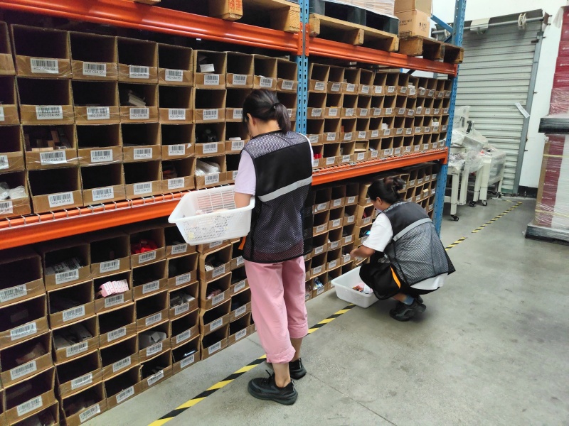 緊接著的分撥環節,根據訂單要求,將商品有條不紊地進行分揀操作。